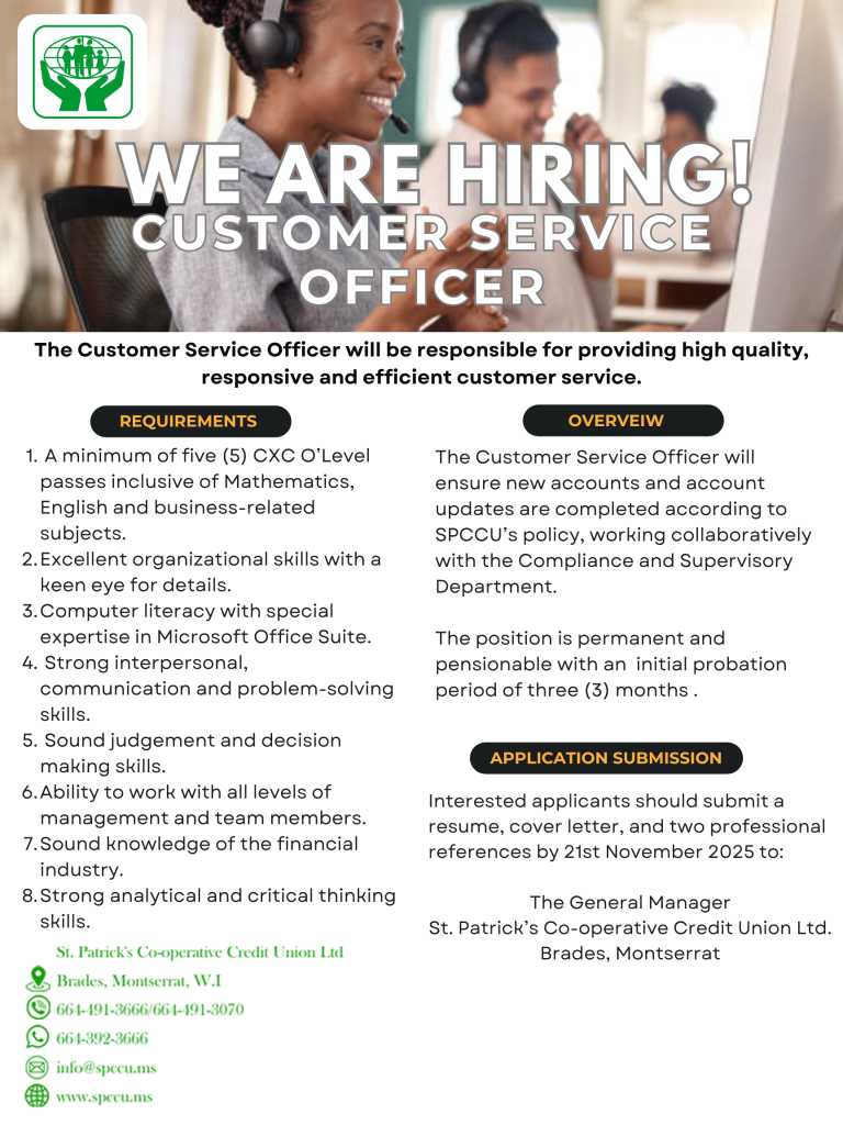Vacancy: Customer Service Officer – St. Patrick’s Co-operative Credit Union Ltd