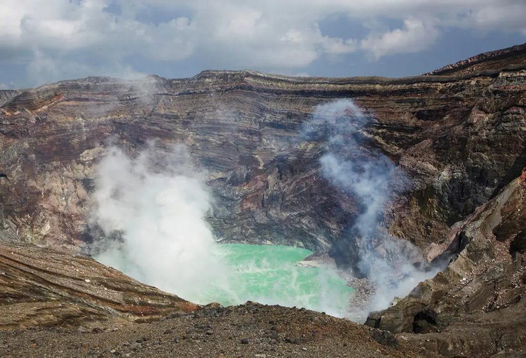 Mt. Aso in Aso-Kuju National Park, central Kyushu, is Japan’s most active volcano. The huge caldera stretches 24 kilometres from north to south, surrounded by five peaks, known collectively as Aso Gogaku. Individually, they are Mt. Naka, Mt. Neko, Mt. Taka, Mt. Eboshi, and Mt. Kishima. Mt. Naka, with a milky green lake wreathed in smoke, is the most active peak, and the main attraction in the region. After the 2016 Kumamoto Earthquake, access to Mt. Naka was temporarily restricted, but the tourist route is now open again. It is a rare opportunity to see an active volcano up close. However, due to search operations following a sightseeing helicopter accident, access to the crater of Mt. Aso’s Nakadake is currently restricted.